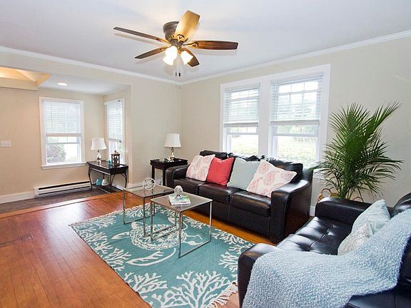 This charming Cape has 3 bedrooms and 2 full baths, it is move in ready and a must see! The updated eat-in kitchen features stainless steel appliance, cherry wood cabinets, granite counter tops and hardwood floors. Upstairs master suite includes two walk in closets and a large skylight with a custom shade in the renovated bathroom. This home has many updates, including a new roof, refinished hardwood floors, new light fixtures, and the interior has been painted throughout. The backyard is fenced, beautifully landscaped with a new deck for entertaining, and a 1.5 car garage. Walk to stores and restaurants, it's a great location!
