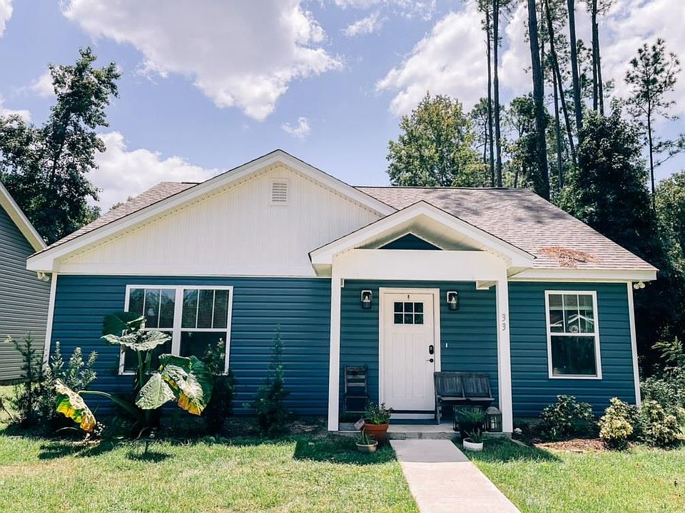 This house has lots of upgrades including LVP flooring, vaulted ceilings, step ceiling in the master with rope lighting, pediments over windows in all the main areas and so much more. The home has a split plan with 2 master closets, inside laundry, so much storage with closets everywhere, a kitchen with a large bar, outdoor patio ready to move into. Yard service is included. Credit score of 675 is required.