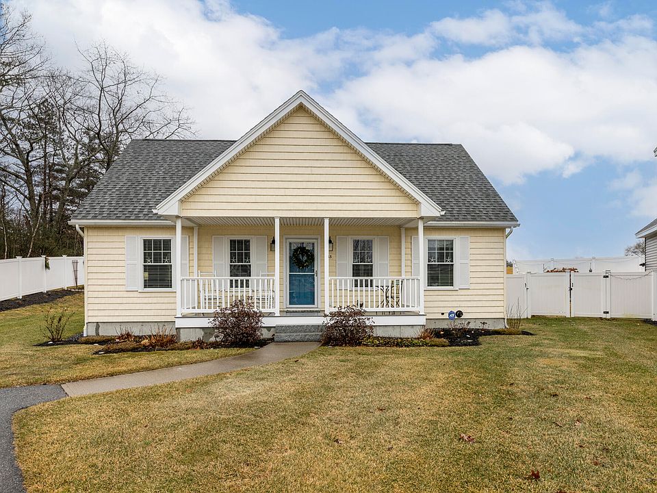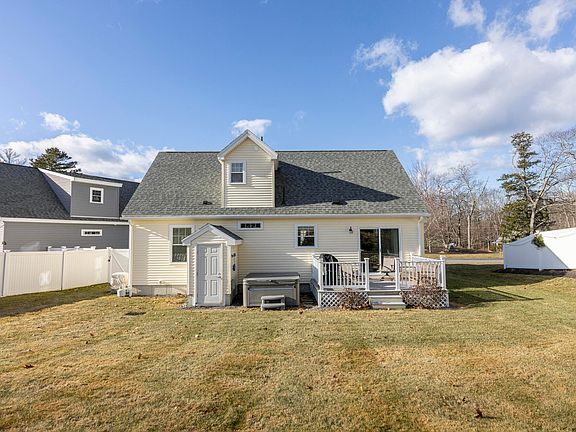 Welcome to Sandy Meadows Community, next to the 12th tee in Dunegrass Country club! The famous 'Old Orchard Beach is 1.5 miles away. This impeccably decorated, meticulously maintained cape is located on a larger private lot at the end of the cul de sac. This stunning home offers 1870sf of finished living space, with ideally open concept . First floor living with primary bedroom, office/ bedroom, full bath and laundry. This home offers a living room, dining area/ sunroom with morning sun to enjoy. Open sliders to a private deck, front porch, central air, gas fireplace, granite counters, stainless steel appliances, all wood flooring and radiant bath floors. 2 additional BR. upstairs with full bath. Enjoy the finished room in the basement with heat and central air.