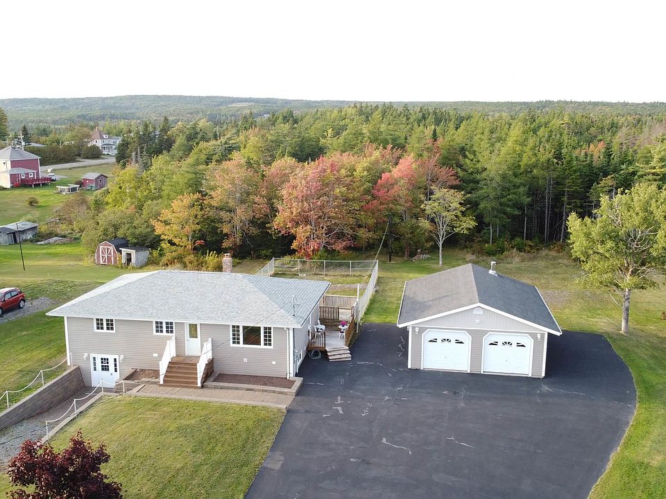 Picture Perfect 3+2 Bedroom Bungalow with In-Law Suite Potential in Scenic Cape Breton. 1.3 Ac on a dead end street. Beautifully updated 1300 sq ft home offers a wealth of features perfect for family living. Located in a friendly, family-oriented community this home is move-in ready with comfort, convenience, and value in mind. Step inside to discover a spacious family-sized kitchen loaded with cabinets, counter space, pot lights, a breakfast bar, pantry, and newer stainless steel appliances, including an LG stove (1 year old) and a fridge with a built-in filtration system. The kitchen flows seamlessly to the walk-out back deck, perfect for BBQs and outdoor entertaining, overlooking a partially fenced yard - galvanized chain-link. Living room with picture window and hrdwd flrs. Enjoy year-round comfort thanks to a recently upgraded heating and cooling system, including a ducted heat pump, new electric furnace, new air exchanger and vinyl windows throughout. The main bath features an air-jet tub and separate shower, offering a touch of luxury. Downstairs, a walk-out basement with private entrance presents fantastic potential for a nanny suite or rental unit, featuring 2 bedrooms, a den/office, large rec room, 2-piece bath, and plenty of storage. Additional highlights include: Municipal water and sewer – no well or septic maintenance, Roof shingles replaced in 2019, New hot water tank 200-amp electrical panel, Huge paved driveway – ideal for multiple vehicles or RV/boat parking, Oversized double garage with tandem space, cement pad, wiring, 2 garage door openers, and a separate panel for a gas generator. Surrounded by natural beauty, this home offers easy access to grocery stores, banking, restaurants, schools, playgrounds, and a boat launch. Outdoor lovers will appreciate nearby fishing, kayaking, boating, ATV and walking trails, plus Dundee Golf Course, beaches, parks, a marina, and community events like outdoor concerts. True pride of ownership!