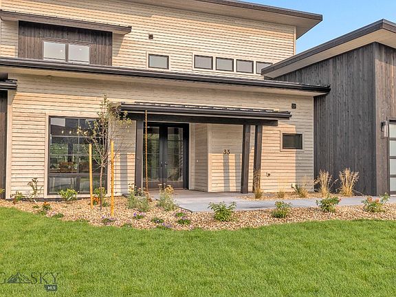 Welcome to this stunning, newly constructed two-story home located in the prestigious Black Bull community, backing up to the serene golf course. This property is a true masterpiece, blending modern luxury with thoughtful design. As you enter, you’ll be immediately captivated by the exquisite details, including beautiful hardwood floors, custom beams, built-in shelving, and a sleek custom fireplace. These elements come together to create a warm and inviting living area that effortlessly flows into the heart of the home—an impeccable kitchen that’s a chef’s and entertainer's dream. Equipped with top-of-the-line stainless steel Thermador appliances, expansive cabinetry, and a spacious pantry, this kitchen offers both style and practicality. The island serves as a statement piece, showcasing a stunning granite countertop, bar seating, and additional cabinets for extra storage. Natural light floods the home through Anderson 400 series windows, enhancing the open, airy feel of each room and offering breathtaking views of the surrounding landscape from one of the most coveted lots in the private community. On the main floor, the luxurious master suite provides ultimate comfort with private patio access and a designated hot tub location, perfect for relaxation. The spa-like master bath features heated floors, a stunning tile shower, a standalone soaking tub, and dual vanities for added convenience. The large walk-in closet includes built-in shelving, providing generous space for all your wardrobe needs. Also on the main level, you’ll find a guest bedroom, a stylish half bath, and a laundry room complete with a utility sink, and an incredible entry closet with additional drop zone opportunities for every weather condition Montana throws at you. Upstairs, provides flexible space for entertainment. The master bedrooms, with their own luxurious full bathrooms, offer the same high-end finishes as the rest of the home, including custom cabinetry and beautiful countertops. Step outside to the deck off the second-floor living area, where you’ll enjoy panoramic views of meadows, farmland, golf course, and a peaceful stream—an ideal setting for relaxation or outdoor gatherings. This home also offers separate heating and cooling zones for each level, with ceiling fans in every room for added comfort. The attached 3-car garage is heated, includes a convenient drain, and offers ample space for storage and organization. (PHOTOS VIRTUALLY STAGED)