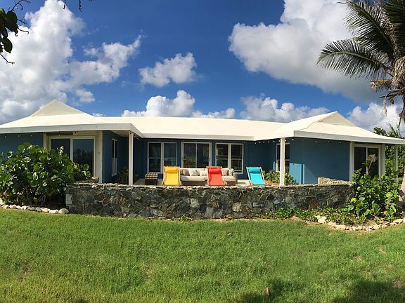 Private Escape, 2 Acres on the water. Panoramic Ocean views from every room in the house. See sunsets and enjoy a private sandy beach. All updated with new windows and doors, bathrooms and kitchen. New split ac in living room and bedroom. Very special and rare find. HOME FEATURES: Kitchen and 3 Bathrooms Completely Updated All new windows and doors (25 total) Newly Refinished Cisterns 2 Cisterns totaling 40,000 gallons Home Water Filtration System New Landscaping Home Comes Completely Furnished 1000 Generator, wired to run home Concrete Storage Shed New ECO Smart Pool Motor Planted dozens of fruit tree Raised bed organic garden Fully irrigated all new plants Buyer pays stamp tax.