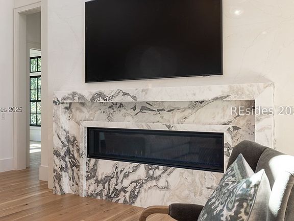 Welcome to this exquisite 5,457-square-foot luxury home, a masterpiece of design and elegance with 6 bedrooms, 6 full bathrooms, and 2 half bathrooms. The property features a stunning pool with an automatic cover, a spa with a waterfall, and a cabana equipped with a kitchen and half bath for entertaining. Inside, enjoy a vaulted living room with a 32-foot quartz fireplace, solid oak floors, and custom cabinetry. The gourmet kitchen has Mele appliances, a wine tower, and a scullery. Additional amenities include an elevator, a carriage house, an Isokern fireplace, and a 25 KW generator, blending comfort and luxury.
