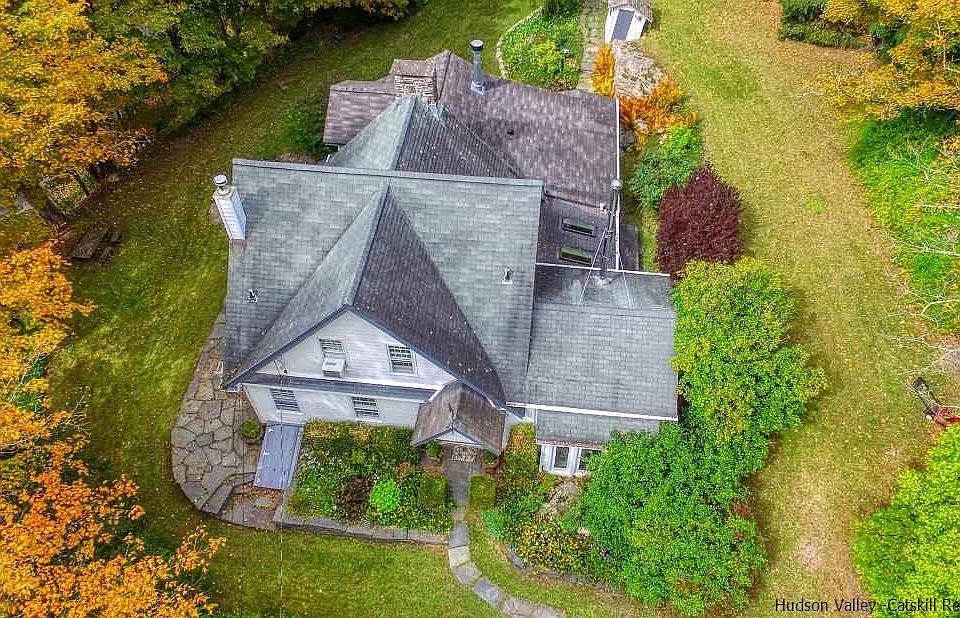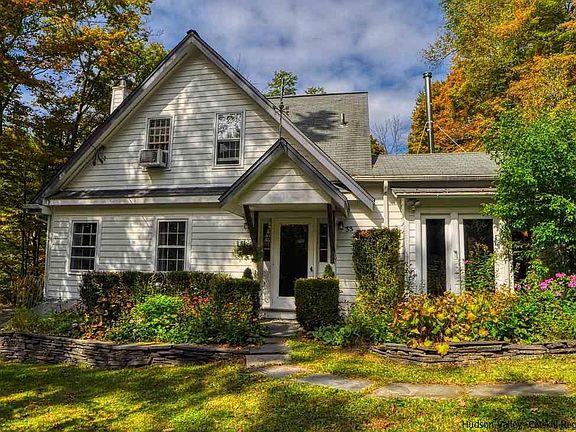 WOODSTOCK COUNTRY HOME w/ INGROUND POOL & PRIVACY!! Nestled on the side of a mountain with winter views of the stream and mountain ranges. This romantic getaway is ideal for full time or weekend use. Only 7 min. to the village and 5 minutes to the Tibetan Monastery. Fishing, skiing, hiking trails, restaurants and a well established health food store make this one of the best locations in Woodstock. Built in 1850, the owners have retained all the original charm and wide board pine floors. The early chestnut beams were exposed in the vaulted ceiling in the LR and used as the mantle for the stone fireplace. The fireplace in the family room is an original and was used for cooking. This room could easily be used for the formal DR. The DR could be converted to a 3rd BR. with simple construction.