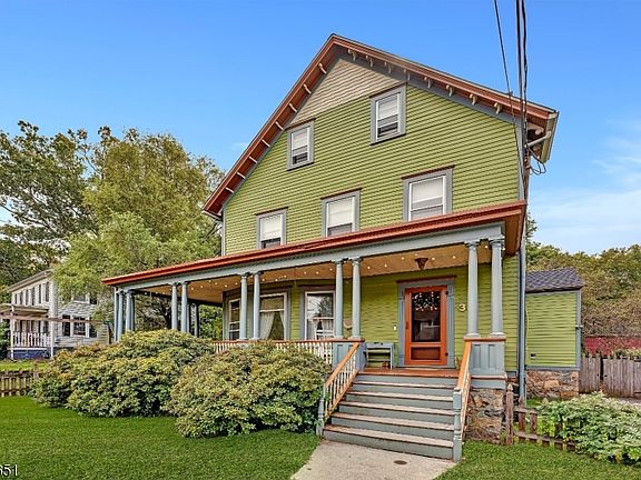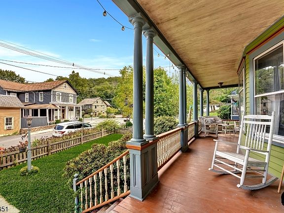 "It's a wonderful life"; and it certainly is, just steps away from the quaint iron bridge that inspired the short story the movie was based on. Don't miss this opportunity to live in a picturesque village, complete with a country store, quaint shops, easy access to Columbia Trail, Ken Lockwood Gorge, hiking, fishing, & everything that idyllic Califon has to offer! This classic colonial with a wraparound porch is a perfect example of the magnificent architecture of the era but with all the modern conveniences of today's living such as dual zone central air, living room w/ gas fireplace/charming built-ins, & updated kitchen with granite counters/newer appliances. Stunning original woodwork, hardwood floors, a grand foyer, high ceilings, charming eat in kitchen, gracious formal dining room, large bedrooms, park like/fenced yard are just some of the many features you will love. Home has a 3-bedroom septic but the versatile floorplan offers flexible living spaces to repurpose per your needs. Potential ensuite or guest room on first floor has full bathroom. 2nd floor has 3 bedrooms plus a sitting room & fully finished 3rd floor is a delightful bonus with 2 ample-sized rooms perfect for work or play. Full basement and detached garage/shed offers all the storage you will need. Park like yard complete with blacktop for basketball/outdoor fun. Located in general business zone for potential mixed use.