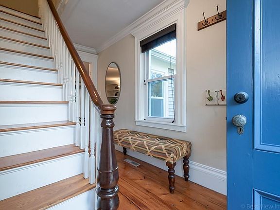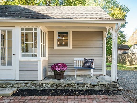 An enchanting porch welcomes visitors to this beautifully remodeled antique exuding warmth, character & enviable updates. Once a railroad ticket station as the story goes - own a piece of history! The heart of this beloved home is the open concept kitchen with center island, stainless appliances, gorgeous granite counters & delightful tin back splash opening to a sun-drenched dining room. The light & bright living room with charming built-ins, rich crown & dentil molding & a nook well suited for a desk or sitting area boasts french doors to a private deck. A first floor bedroom, spacious full bath & large family room graced with beadboard wainscoting complete the main level. Two generous bedrooms including a master with private bath are found on the 2nd floor. Enjoy handsome wood floors, convenient 1st floor laundry & a sprawling, picturesque yard featuring a grape covered arbor & pear trees - a perfect backdrop for a recent wedding. What dreams will come true for the next proud owner?