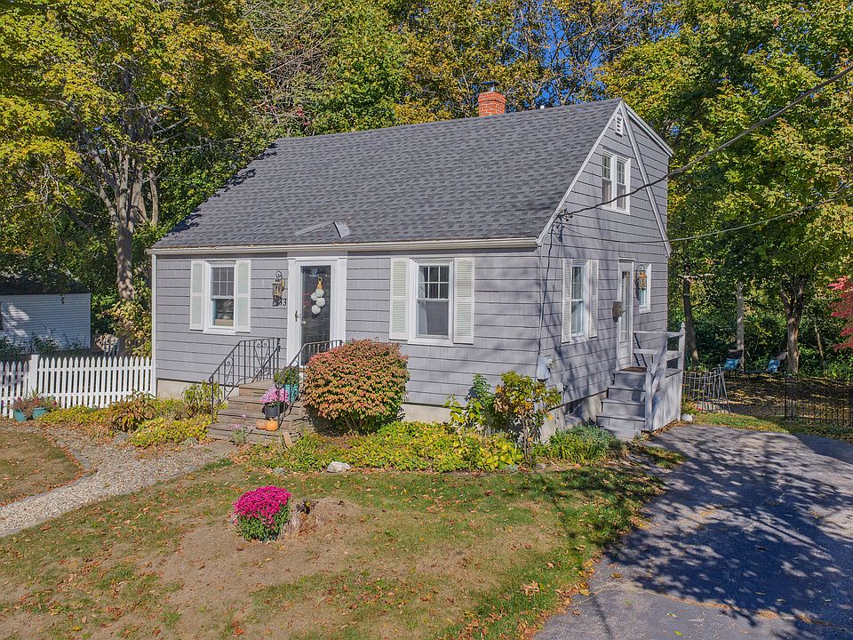 Sweet cape cod home located in a quiet Ocean Ave/Back Cove Neighborhood. It's uniquely sited on a double lot, providing extra privacy and room to play and garden. The first floor layout is relatively open with wood floors and a half bath. A built-in peninsula/breakfast bar divides the kitchen from the dining and add more storage. The office/bedroom has a glass door that opens to a great sized deck for relaxing outdoor living as well as fun entertaining. A pretty open stairway leads to 2 large bedrooms and a full bathroom on the 2nd floor which is very cozy helping keep heating costs quite low. The large yard has a patio, shade gardens & storage shed to one side. Some basic pet fencing is in place for your furry friends. A stone parking area with light post is on the other side for your RV, boat or extra parking. Sun drenches the front gardens and walkway. Imagine adding raised beds for veggies, herbs and maybe more flowers. Come see if this could be your next home sweet home.
