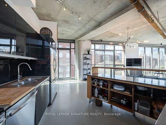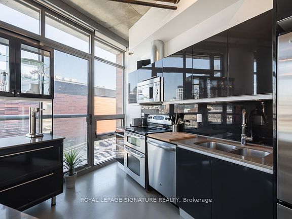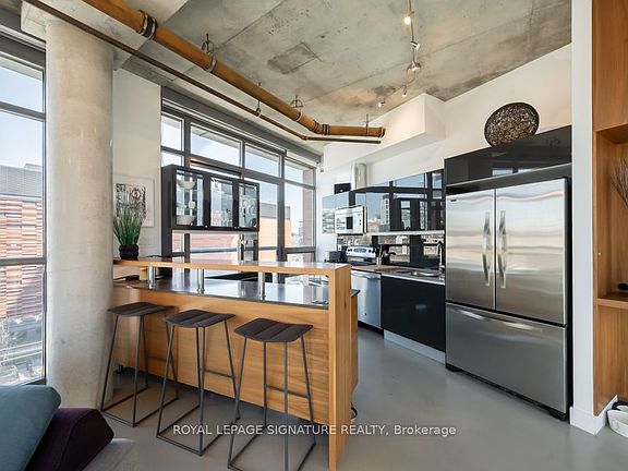 Rarely offered oversized one bedroom loft furnished w/ designer furniture located in Toronto's most iconic area, the Distillery District. This unique space has sky high ceilings and floor to ceiling windows with a pleasant city and park view, tons of natural light. The Unit is fully customized and upgraded with superior craftsmanship. A massive Hammam spa-like bathroom with a rainwater style shower and free-standing tub. Modern style customization done in the bedroom with built in walnut cabinetry. It's all in the detail. Not to mention 33 Mill is the best building in the distillery, amenities include: 24hour concierge, gym (w/squat rack), outdoor pool and so much more.