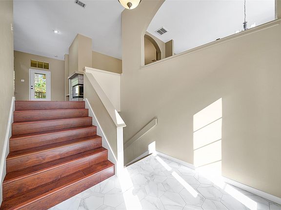 Move-in ready and unique Life Forms home that sits on quiet a cul-de-sac right in the heart of The Woodlands. Be sure to check out the kitchen update with elegant quartz counters, granite sink, crisp white cabinetry, & ss appliances, the primary suite featuring a wall of windows & soaring ceilings, and the primary bath update featuring a stand-alone soaker tub, frameless shower glass, & a large dual sink vanity. Main living areas are upstairs, with a large game room and 3 secondary bedrooms down. Off of each of the living areas are covered patios for enjoying the outdoors. Walk or ride to top-rated David Elementary and Collins Intermediate schools. Experience over 250 miles of hike and bike trails, 150+ parks, pools, sports courts, world class dining, shopping and entertainment that make The Woodlands an incredible place to live. The Roof was replaced & exterior painted in December 2025!