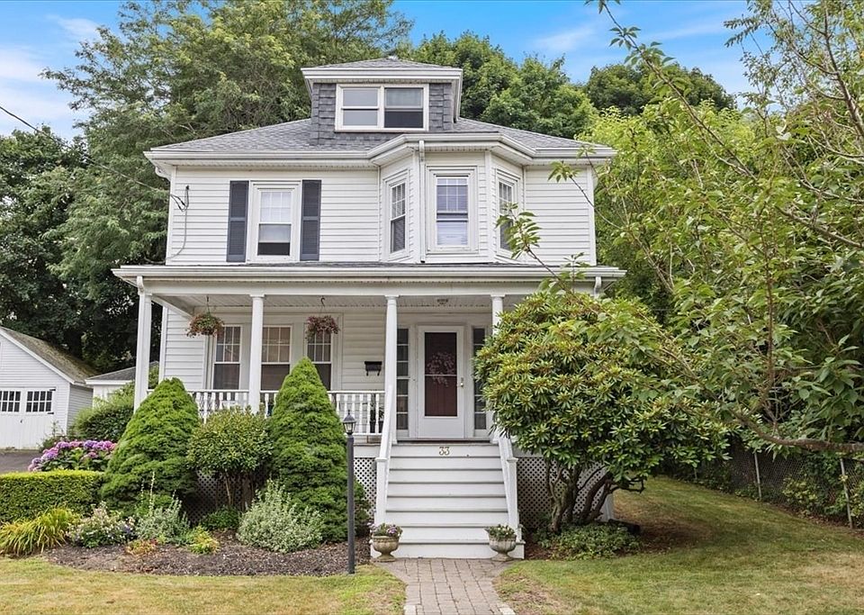 Welcome to one of the most desirable streets in South Salem! Very close to Pickman Park, Forest River Park, and convenient to downtown Salem and Vinnin Square! This wonderfully maintained 4-bedroom, 2-bath Colonial features a large eat-in kitchen, a gracious foyer, spacious living and dining rooms, and a full bath on the first floor. Upstairs, you'll find 4 bedrooms and another full bathroom. Hardwood floors and period details are throughout the home. The basement, a one-car garage, and a shed provide ample storage. Enjoy cookouts or quiet time overlooking your beautiful perennial garden on your back deck or relax on your welcoming, covered front porch. The roof and chimney were done in 2022. Dishwasher and Washer/Dryer are less than 5 years old. Come and see this fantastic one for yourself!