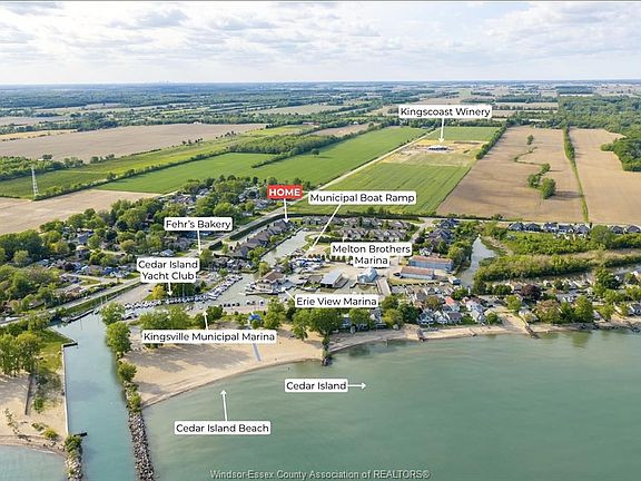 The serene lake-life is calling, this is your opportunity to answer. Located in Kingsville’s exclusive Catalina Cove Estates waterfront community, just off the shores of Cedar Island, this custom-built ranch is a boater's dream. Imagine waking up every morning enjoying your morning cup of coffee with breathtaking sunrises and the sun dancing off the canal. With +40 feet of deeded water access on a private canal you can dock your boat just steps from your backdoor and enjoy direct passage to Lake Erie, a true boaters paradise. Featuring quartz + granite counters, stainless steel appliances, custom cabinetry, engineered hardwood flooring, tray ceilings, central vac, alarm system, gas fireplace, expansive stamped concrete patio, James Hardie cement & stone siding + much more. A full partially finished basement w/ R/I bath is awaiting your vision. Cedar Island, sandy beaches, a bakery, Kingscoast winery, marina, Cedar Creek, Yacht Club, and playground are all a quick walk away. Whether you're looking to entertain friends and family, sail across Lake Erie on a moments notice, or just relax at home, this is the place for you! Here, everyday feels like a getaway. Call today to book your private tour