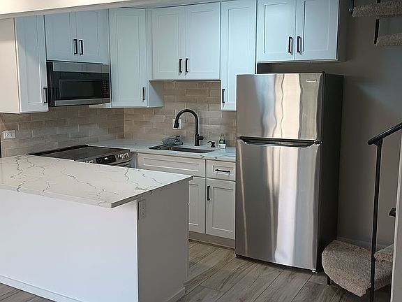 This unit has been completely remodeled from top to bottom. It features all-new kitchen cabinets, countertops, and high-end Frigidaire appliances. The modern bathroom includes a walk-in shower, a separate hand-held shower, and a rain showerhead. Additionally, there is a new hot water tank and a dual-split air conditioning system with a built-in heat pump on both floors. The unit is finished with porcelain tile flooring, new carpet in the bedroom, and on the stairs. This is a must-see unit, ready for you to move in!
