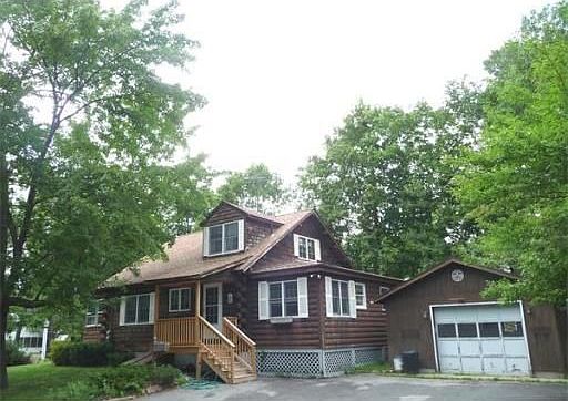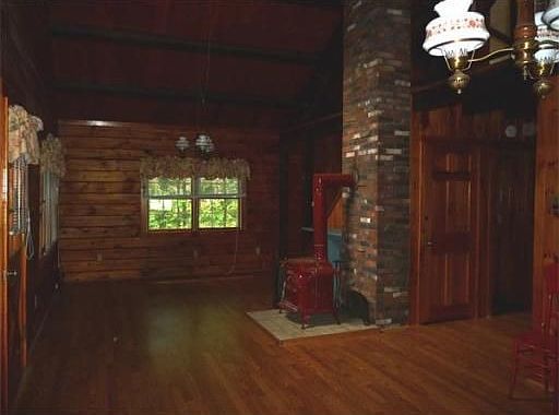 Unique home on lovely corner lot. Custom built log home by Northeastern log homes in Vermont. This wonderful home has been meticulously maintained, has gleaming wood floors, soaring ceilings, beams, character and charm. Combination Family room/Dining room, galley kitchen, breakfast area off the kitchen, 1st floor master with sitting room or could be used as 2nd bedroom-living room. 2nd floor overlooks the family room and 2nd large room that can be used as a bedroom with window seats.