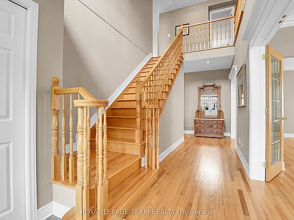 Welcome to 33 Northgate Street. This home is one of an exclusive Group of Seven executive homes backing onto the more than 30-acre Centrepointe Park. Not your everyday location inside the Greenbelt. A premium lot backing directly onto Centrepointe Park with private access.Superbly maintained and updated by the original owner, this all-brick Minto Ivory model features over 3,000 square feet above grade with 9-foot ceilings. Northgate is the only street in Centrepointe where Minto built with 9-foot ceilings. The layout suits both everyday living and entertaining, with generous living and dining rooms ideal for family gatherings. The kitchen and family room overlook Centrepointe Park, with its nature pond, walking paths, soccer pitches, playgrounds, splash pad, and 9-hole disc golf course.Inside, youll find a light-filled main level with refinished hardwood floors, a cathedral ceiling in the family room, and a rare dual staircase to the upper level. Upstairs are four spacious bedrooms and two modernized bathrooms, all with hardwood flooring. The lower level includes a large finished room of approximately 900 square feet, ready to adapt to your needs.Centrepointe offers excellent schools, shopping, recreation, and public transportationall within easy reach.
