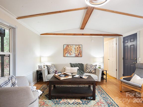 Nestled in the charming town of Woodfin, this delightful property offers a unique opportunity to enjoy year-round mountain views and peaceful, private living. Conveniently located just 15 minutes from both Asheville and Marshall, and a short drive from the scenic French Broad River, this home provides the perfect balance of tranquility and accessibility. Situated on a private 0.79-acre lot, the property features a paved driveway with a secure gate. An oversized carport offers ample space for RV storage, while two separate workshops provide plenty of room for storage or pursuing hobbies. The permanently affixed manufactured home has been lovingly cared for throughout the years. It has wood siding and a newly shingled roof ( 2024 )