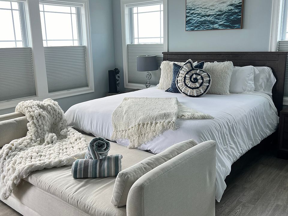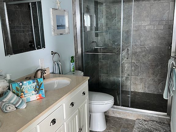 One block to the beach this coastal themed townhome style condo offers 2 bedrooms and 2.5 baths. Each bedroom has its own en-suite bath. This is a fully furnished home with kitchen/living/powder room/smart tv and balcony on first level. Second level has two bedrooms, two bathrooms, small balcony off the primary and laundry. One designated parking spot right next to building entrance with elevator inside makes it easy! This home has all 5 star ratings on airbnb for summer rentals, is in top 5% of homes and owner is a Superhost. This Zillow rental is only available in the off-season and requires a 2 month minimum with flexible start date beginning on November 1st.