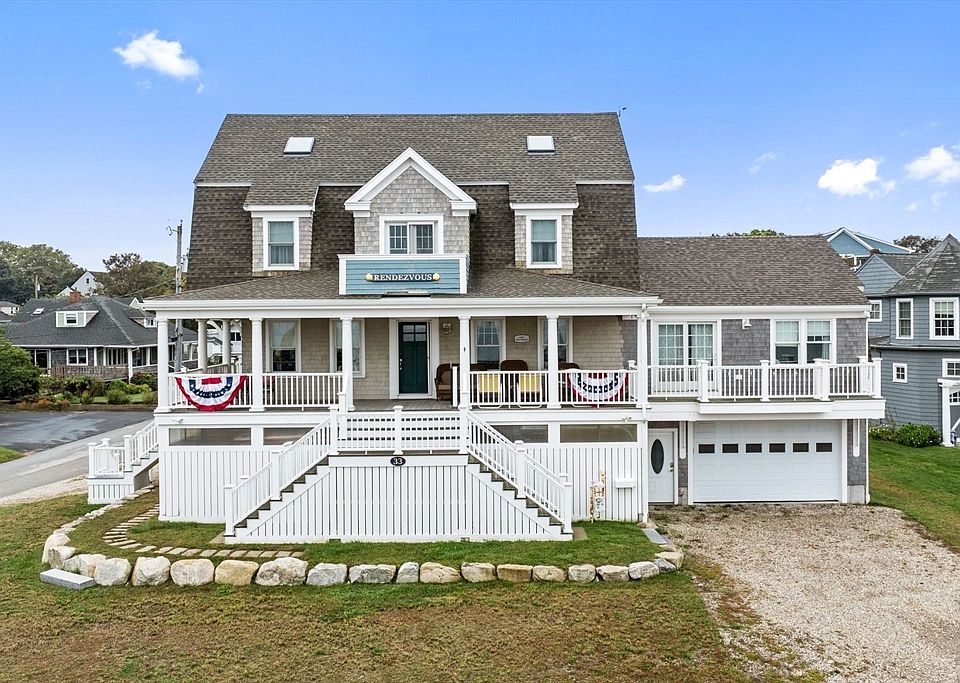 This stunning Colonial in Sand Hills blends coastal charm with thoughtful craftsmanship and luxury finishes. Built in 2013 and beautifully maintained, this home features radiant-heated bathroom floors, elegant coffered ceilings, and a gas fireplace surrounded by hand-selected beach stones—details that reflect the care and quality put into every inch. Perfect for entertaining, you'll love the bar area, expansive deck, covered porch, and outdoor shower—ideal for rinsing off after a beach day just down the road. The flexible layout includes a separate 2-bedroom in-law unit with its own deck, offering privacy for guests or extended family. Plus, the finished third floor makes an excellent home office, playroom, or bonus living space. Located just minutes from Scituate Harbor’s shops, restaurants, movie theater, and the commuter rail to Boston, this home offers the lifestyle so many are searching for—beachy, beautiful, and incredibly convenient.