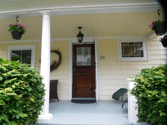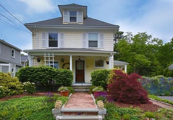 Warm, inviting, renov southwest-facing 4 BR Colonial with lots of period features in prime commuter location near Auburndale T/Mass Pike/128. Enter the welcoming foyer with stained glass window and architectural columns leading to the open floor plan living/dining rooms. The kitchen is a cook's delight with professional Wolf stove and hood; SS Bosch DW & Fisher-Paykel fridge; radiant heated slate floor and beautiful cherry cabinets. Step onto the side porch, or rear patio, and enjoy the enclosed professionally landscaped grounds planted with a variety of perennials/shrubs offering year-round interest. A half bath completes the 1st floor. 2nd floor has updated bath, 3 light-filled, good-sized BRs, including a master with huge walk-in closet. 4th bedroom on the 3rd floor is absolutely charming with beamed ceiling, built-in window seat, and lots of storage. Roof, windows, kit, baths, heat, HW, electrical, plus many more upgrades too numerous to list, all redone within the last 5-15 years