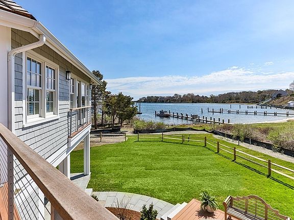 Overlooking Cotuit Bay and located in the heart of the village, this newly renovated beach house offers resort-style living and spectacular views. Designed for indoor-outdoor living, the home features multiple terraces, a sprawling lawn area, and large patio doors providing an abundance of natural light throughout the home. The open-concept kitchen and living spaces, all of which face the water, allow for effortless entertaining. Upstairs, the luxurious primary suite has vaulted ceilings and a private balcony. Two additional bedrooms, one with a private deck also enjoys panoramic water views. A large covered patio area with retractable screens provides extra living space to enjoy the spectacular surroundings. Also, an automatic generator provides power to the entire house in the event of an outage. Just steps from the town wharf, one can kayak, paddle board, take the launch to their boat, or simply enjoy the endless sights that come with living on the bay.