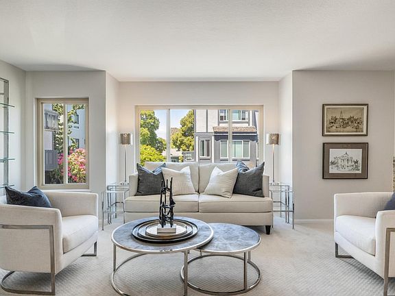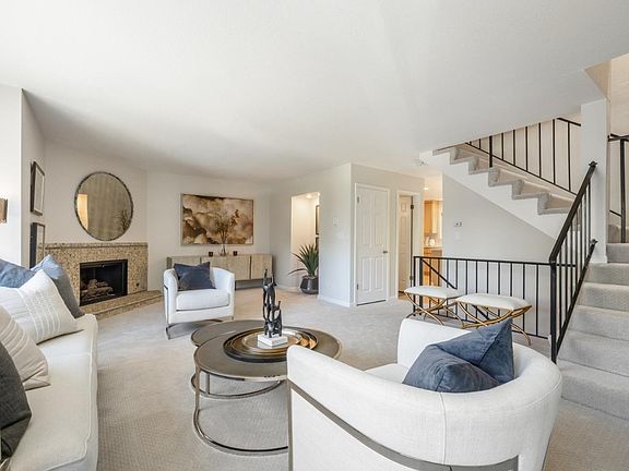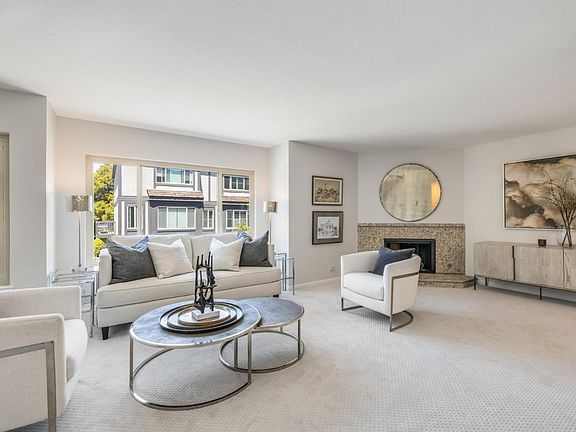 Ideally situated mere steps from Burlingame Avenue and masterfully blurring the lines between a townhouse and a single-family residence, this updated and bright, 2 bedroom, 2.5 bathroom unit will delight. Anchored by a mosaic tile fireplace, the living room seamlessly transitions to the renovated eat-in kitchen replete with brilliant white quartz counters, stainless steel appliances, a breakfast bar and custom maple cabinetry. Atop the stairs, the primary suite features dual closets, dual vanities, a sunken tub, and a private water closest and sits across the hall from the second generous ensuite bedroom with a private balcony. Downstairs grants the versatility for a comfortable family room or a sizable third bedroom with backyard access. Offering a main level half bath, indoor laundry, dual pane windows, new paint, new fixtures, new carpeting, an attached 2-car garage with extra storage, top rated schools, and a walk score of 96 makes this Burlingames most desirable opportunity!