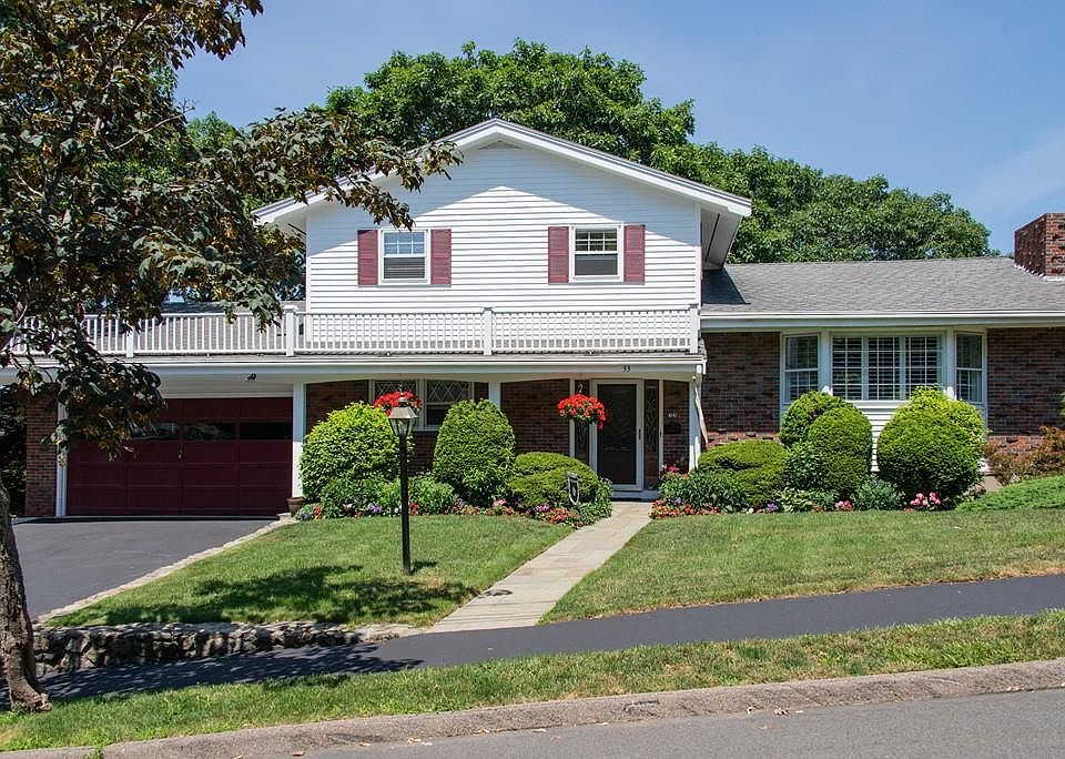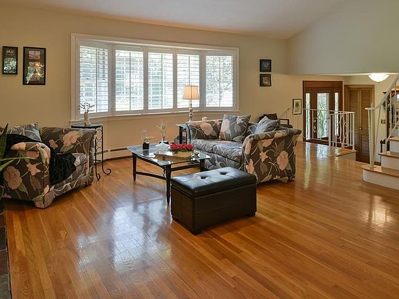 At first glance of this CHARMING BRICK AND CLAPBOARD HOME on well landscaped grounds you sense the care and pride of the owners who have lived here for 30 years. This 9 room home offers the OPEN FLOOR PLAN with many places to enjoy. The living/dining rooms with cathedral ceiling open to the new granite kitchen with Bosch/GE Profile appliances, then a few steps down to a spacious family room with beamed ceiling, ideal for cozy relaxation. The library/office with custom shelving can double as a guest room. The king master bedroom has its own new bathroom and there's another bathroom for the other bedrooms. On the lower level there is a playroom with kitchen appliances, laundry & direct walk out to the lovely stone patio and fenced back yard. Hardwood floors and recessed lighting add to the appeal. The oversized two car garage has overhead storage and a workshop area. This turnkey, well-built home is on a residential circle convenient to Whole Foods/Starbucks in Vinnin Square.