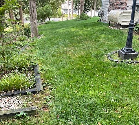 Corner brick fireplaceMain level sun roomLower level family roomManicured lawnOpen bow windowFormal dining roomWell appointed kitchen