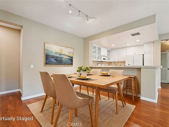 Welcome to 33 Perennial, a rare former Shea Homes model residence showcasing designer upgrades exclusive to model units in the prestigious Quail Hill community of Irvine. This meticulously maintained 2-bedroom, 2-bathroom corner unit offers 1,382 square feet of thoughtfully designed living space, all on a single upstairs level. The open-concept layout seamlessly connects the kitchen, dining, and living areas, enhanced by premium model-exclusive features including luxury vinyl plank flooring, a custom-built media cabinet with integrated shelving, built-in surround sound speakers in both the living room and primary suite, elegant wainscoting in the primary bedroom, and a built-in security system. The gourmet kitchen features timeless white cabinetry paired with stone countertops, while the primary suite includes dual sinks, stone counters, and a spacious walk-in shower, with the secondary bedroom offering its own private en-suite bath. Additional highlights include a private balcony overlooking a serene courtyard and a two-car side-by-side garage with custom built-in storage cabinetry and direct access. Enjoy Quail Hill's resort-style amenities including pools, spas, fitness center, parks, hiking trails, and a clubhouse all within walking distance to Quail Hill Shopping Center and minutes from UCI, Irvine Spectrum, John Wayne Airport, and top-rated Irvine schools, making this a rare opportunity to own a true model home with exclusive designer upgrades in one of Irvine's most sought-after communities.