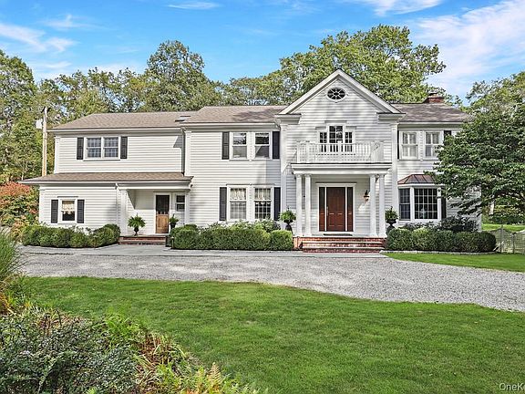 Perfectly sited at the end of a quiet cul-de-sac, this Pound Ridge residence combines timeless charm with modern comfort on two beautifully landscaped acres. Surrounded by specimen plantings, gardens, and mature trees, the property offers exceptional privacy, a large level yard, a stone-lined koi pond, and a stunning slate patio with a fire pit - an ideal setting for entertaining or simply enjoying the outdoors. Inside, the home is rich with detail, featuring wide-board floors, custom moldings, and built-ins throughout. The heart of the home is the gorgeous kitchen, designed with marble countertops, a beadboard ceiling, brass pendant lighting, and a large center island that invites gathering. A commercial-grade range, separate full-size Sub-Zero refrigerator and freezer, and farmhouse sink make the space both beautiful and functional. The kitchen opens seamlessly to the family room, where exposed beams and a stone fireplace create a warm and inviting atmosphere. Additional features include new composite siding, a new roof, many new windows, central air, and a whole-house generator. The finished lower level (not included in the listed square footage) adds flexible living space, while the circular drive enhances curb appeal. With a potential pool site and peaceful setting just minutes from town, this property offers the best of country living-only about an hour from New York City.
