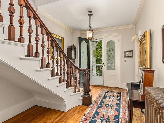 Beautiful antique home with classic New England charm. Located in an established Exeter neighborhood, this property is within walking distance to schools, Amtrak and PEA. Updated kitchen!This home includes many original features throughout such as wide pine flooring, curved walls, and two staircases; a charming two story curved floating staircase in the entryway and a rear interior staircase off the kitchen. Double pocket doors separate the formal living room with bay window and study with built-in bookcases and both rooms feature Marble mantles. Sun room off the kitchen has views of the attractively landscaped 1.1-acre lot. Screened porch, first and second story deck with views of the gardens. Home is modernized with a 2 Geo-Thermal heating system and partial AC. The attached Carriage barn features a guest suite/in-law currently used as an office that connects directly to the main house. Just a short walk downtown to enjoy shopping, dining and river views in downtown. Showings begin on Sunday 12/10/2023, at OPEN HOUSE from 11:00-1:00.