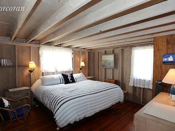 Pond Point in Westhampton Beach. Quaint summer cottage located on the open Moriches Bay. Home features four bedrooms, one updated (in 2017) full bath, two half baths, and an outdoor shower. Home sleeps seven with five twin beds and one king bed in master bedroom. Brand new French doors allow for access to large backyard deck from master bedroom. Sandy backyard includes expansive deck with BBQ, kayaks, large dock, and bulk-heading. Renters will have ocean beach access close by on Dune Road. Great deal.