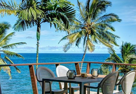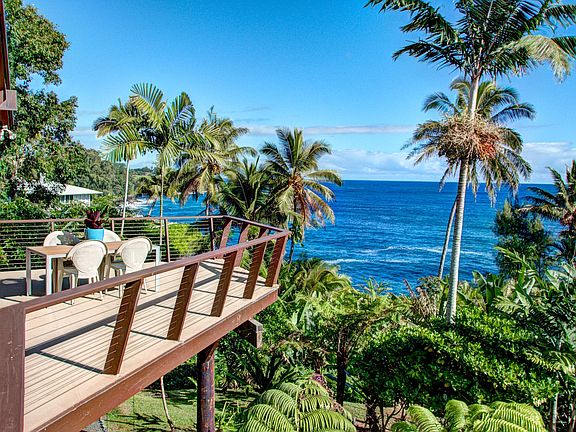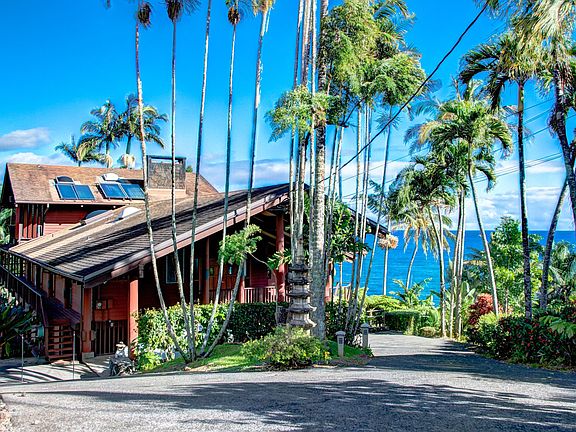 This beautiful three-story oceanfront estate possesses lanais on each floor, all offering dramatic, picturesque views of the Pacific Ocean. The large foyer leads into the recently remodeled kitchen, which contains a 13' island, bamboo cabinets, granite counter tops and top-notch appliances, including a sub-zero refrigerator and a double oven. A lava rock fireplace warms the grand dining area, situated under soaring vaulted ceilings and finished with an exquisite stone floor.On the main floor, there is an office with a built-in Koa bookshelf library, three bedrooms (one with its private bathroom), a powder room and a full bath, A wrap-around lanai invites the ocean to your sight. The master suite on the top floor has its own fireplace, dressing room, study, and wet bar. The master bath includes a Jacuzzi-style tub, huge double walk-through shower with ocean views, double sink vanity with granite counter tops, travertine floors, open-beam vaulted ceilings and a lanai facing the ocean. Another bedroom suite is accessible from a separate entry on the lower level. This unit has a 3/4 bath, living area, a wet bar, refrigerator and fireplace. As a bonus, there's a spacious dance studio with ballerina's bar, mirror, powder room - truly a great space for a dancer, or a potential hobby room. This level also contains laundry, extra storage, and a "man's cave." Floor to ceiling windows offer mesmerizing ocean views from every major room in the house while skylights bring much natural light to the house. The lanais bring in the surrounding nature and are suitable for entertainment or relaxation. Redwood exterior finish is elegant and new solar water heaters are energy friendly. 14 ceiling fans add much cool air to the house. Both dryer and washer are front loading and easy to use. New roof was recently installed.This exquisite spacious estate allows for a gracious yet productive lifestyle on the shores of East Hawaii.
