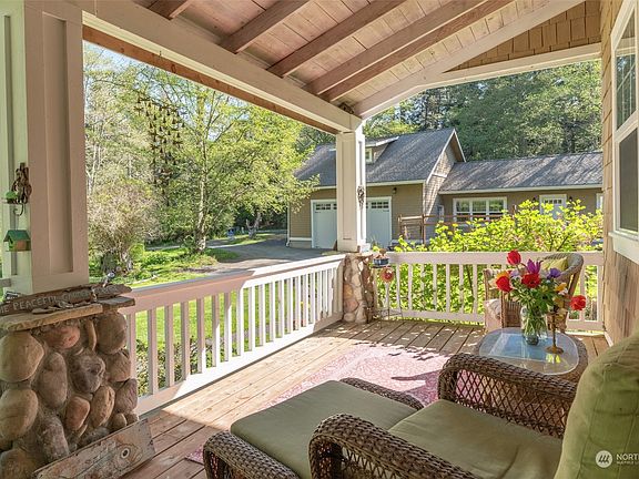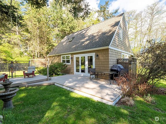 Enjoy the views along the designated Scenic Byway leading to this picturesque home. Hike to South Beach and American Camp or enjoy the nearby community beach. This well-maintained 1400 sf home with spacious front porch includes an efficient 3-step kitchen with soapstone countertops and beautiful cabinets, spacious living and dining areas with a river stone fireplace, office, laundry room and half-bath. French doors open to the sunny back deck ideal for fox watching. Two bedrooms and a 3/4 bath with spacious shower on the upper floor. A separate 668 sf single-level guest suite near main house extends the living space with a bedroom, full bath and spacious den. Attached 900+ sf extra-tall garage. Fiber installed. Sold partially furnished.