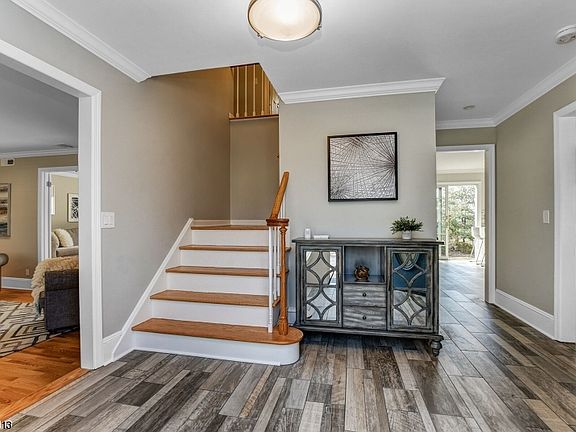 Pristine center hall colonial with numerous upgrades and great location close to parks and schools. Large light-filled rooms with gleaming hardwood floors and great flow for entertaining include Living Room highlighted by fireplace with floor to ceiling brick wall surround, Family Room with access to expansive patio and private backyard, updated eat-in Kitchen with custom cabinetry, breakfast bar, Laundry alcove and additional patio access. Second level Master Suite features large bedroom, en suite bath/dressing area with walk-in closet, make-up vanity, Jacuzzi tub, dual sink vanity and tiled stall shower. 3 additional bedrooms serviced by fully renovated hallway bath. Lower Level features large Recreation Room and Bonus Room/Home Office. Don't miss this immaculate home that provides the ultimate move-in ready option!