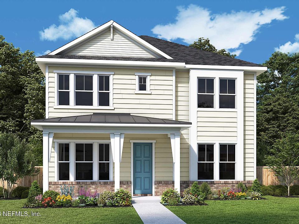 Nestled in one of Nocatee's newest communities, Seabrook Village, The Goldston is both spacious and cozy. This two-story home boasts 4 bedrooms, 3 bathrooms, and 2,370 sqft. When you're not spending time in the gourmet kitchen with family or entertaining guests, you may find yourself relaxing on the extended lanai or working in the private office space. The first level also has a bedroom with a full bathroom, which makes it perfect for guests or extended family stays. The life design concepts shine through with windows for natural lighting, and sliding glass doors to the lanai that can be seen from the from entryway. The second level boasts 3 bedrooms, including the Owner's Retreat with ensuite Owner's bath. Upstairs laundry is both convenient and functional making everyday life a breeze. The Goldston's exterior has a costal design with a front porch large enough to make all your own! It sits on a prime homesite within walking distance of Seabrook Village's amenity Seabrook Park. Seabrook Park will provide Nocatee's largest community pool, 2 dog parks, a playground, and pavilion.