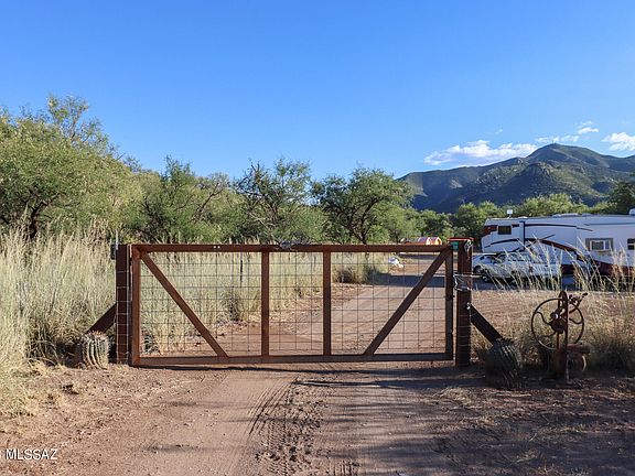 Enjoy 6.06 acres in a quiet HOA just outside of Patagonia town limits. The lot is ready to build your dream home. All utilities are on the property and in operation! The beautiful mesquite trees are trimmed and provide ample shade on a large portion of fenced land. A new shed is ready for your tools and goods. The electric gate keeps everything protected and this parcel provides private creek access. The opportunities are limitless and all the work has been done, including an elevation certificate.