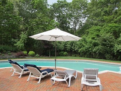 Rental Registration #: 16-2,798 At the end of a lovely winding road is nestled this perfect Hamptons home featuring four bedrooms, including a first floor master, three full baths, gourmet kitchen, open dining and cathedral ceiling living room with fireplace, and separate den which could be a fifth bedroom. The full basement currently hosts a carpeted lounge with TV and gym equipment. The back yard has plenty of room for entertaining on the patio, the heated pool has full day sun and the picture is completed with an outdoor shower. The oversized two-car garage has room for your surfboards, bikes, golf clubs etc..