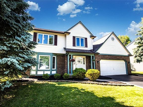 Owners' unexpected relocation provides a currently rare opportunity for you to buy over 2200 sq. ft. of this beautiful Ransom Oaks Traditional Colonial on a peaceful, dead end street. A classic floor plan: Generous eat-in kitchen featuring solid surface countertops, stainless appliances - including fridge (May 2020), gas range, dishwasher, microwave. Washer & dryer also stay. Contemporary styled living room and dining room, great for entertaining. New flooring throughout (tile, laminate & wall-to-wall carpeting) (2018). A step down Family room with vaulted ceilings and fireplace opens to the large freshly stained deck with pergola and the expansive parklike and treed backyard. Four, generously sized bedrooms upstairs, including the master en suite bath with vaulted ceilings and generous closet space. All freshly painted. Roof Aug 2010; windows approx. 5 yrs old; water tank approx. 4 yrs old. Williamsville schools. 3 pools, tennis court included in association dues.