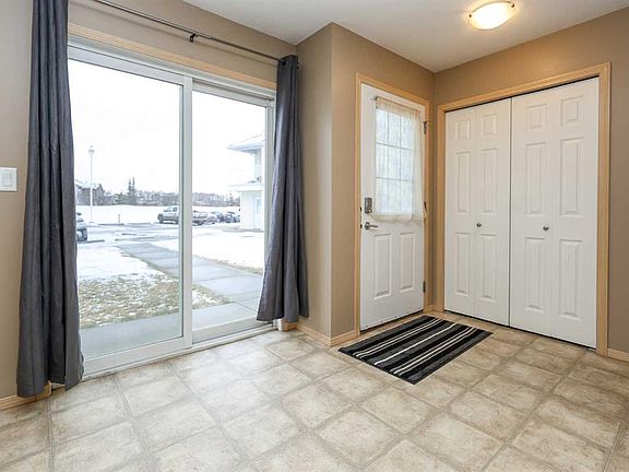 IMMEDIATE POSSESSION AVAILABLE ~ 2 BEDROOM, 1 BATHROOM MAIN FLOOR CONDO ~ SOUTH FACING PATIO ~ Covered front entry leads to a welcoming foyer with a generous size coat closet ~ The concept layout ~ Spacious living room features sliding patio doors that allow natural light to fill the space, and lead to the south facing patio ~ The kitchen offers a functional layout with plenty of cabinet and counter space including an island with a raised eating bar, plus a walk in corner pantry, black appliances and a dining area ~ The primary bedroom can easily accommodate a king size bed plus multiple pieces of furniture and offers a walk in closet ~ In unit laundry conveniently located next to the 4 piece bathroom ~ Finished storage space ~ 1 powered parking stall just outside the front door with tons of visitor and street parking available ~ Monthly condo fees are $423.65 and include; heat, insurance, gas, maintenance grounds, parking, professional management, reserve fund contributions, sewer, snow removal, trash and water offering a low maintenance lifestyle ~ Centrally located with easy access to tons of great shopping and restaurants, parks, playgrounds, walking trails, YMCA, with all other amenities close by ~ Immediate possession is available ~ Pets OK with some restrictions.