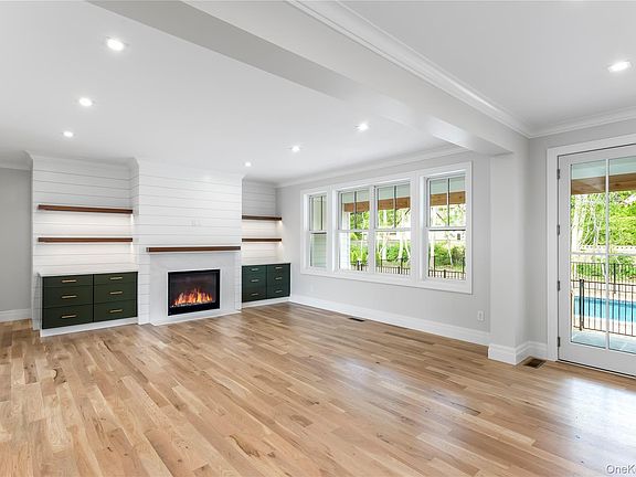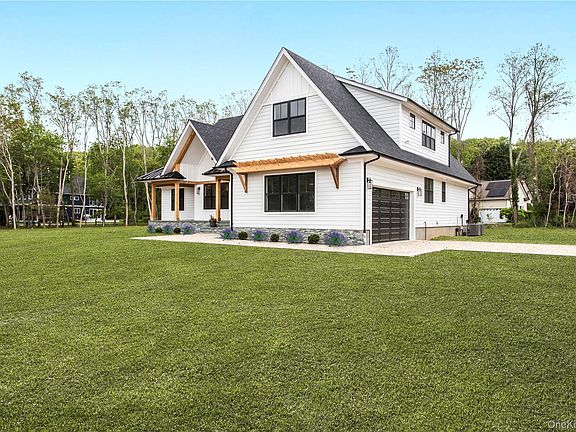 The upper level includes a loft, two additional bedrooms, a full bath, and a large bonus room, perfect for various uses. Outdoor living is unparalleled, with covered front and rear bluestone porches and a saltwater pool. For water enthusiasts, the property includes deeded beach bay beach access approx.. 5min walk away along with deeded waterfront land with a private two-slip dock across the street, offering direct access to Peconic Bay's great fishing and water sports.