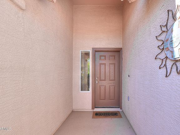 Welcome to your dream retreat in the highly sought-after Mission Royale community! This freshly painted, fully furnished 2-bedroom, 2-bath home sits directly on the golf course, offering stunning views & effortless resort-style living. Step inside to discover an open, modern floor plan featuring engineered stone countertops, black & stainless steel appliances, recessed lighting & pull-down shades for a sleek, contemporary feel. The primary suite offers a spa-like experience with a dual-sink vanity, tiled backsplash & tiled walk-in shower. Guests will love the bay window in the second bedroom that fills the space with natural light. Enjoy added convenience with a laundry room with built-in cabinetry & extended garage complete with utility sink, water softener plus golf cart! This turn-key ready home has everything you need to start living the Mission Royale lifestyle todayjust bring your suitcase and your clubs & get ready to enjoy all the amenities this community has to offer!