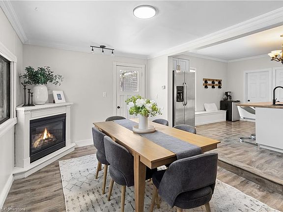 JUST WOW! Welcome to this beautifully restored century DETACHED BUNGALOW situated on a LARGE LOT in a convenient family friendly neighbourhood located in the desirable community of Ayr, ON. This property checks more boxes than you might expect as a first home, and is completely move in ready with room to add your own style/value. This home is an entertainers dream with expansive living spaces, such as the renovated open concept kitchen, dining room, and living room. The detached garage has been converted to a man cave/she shed or music rec. room heated with a gas fire place. There are (4) fireplaces on this property adding more character along with a functional layout. Additional features include new front porch, deck, and 2 separate driveways (single+double-wide) for extra parking. This stunning 2 bed, 1 bath home presents the perfect combination of charming character and modern design packed with impressive features & upgrades. Stainless steel appliances, pot lights, newer flooring, and plenty of natural light. Further interior upgrades include flooring, fresh paint, pot lights, new kitchen sink, granite backsplash, and other new light fixtures. The entire home is complete with new copper electrical (100 amp service), plumbing to meet current standards, high efficiency furnace & AC, as well as main floor laundry. Exterior upgrades include, (2025) eavestroughs, stone pathways, front to back landscaping, deck with fireplace overlooking your private backyard oasis, shed and fire pit. The ATTIC space can be accessed through the laundry room for additional storage or could be finished in the future for additional living space. This is truly a one of a kind turn-key starter affordable move-in ready bungalow in a great location surrounded by mature trees that you do not want to miss. Lastly, this home is close to schools, parks, amenities, downtown core, trails, Watts and Jedberg pond, & the Nith River only a short drive to highway 401 so book your showing today!