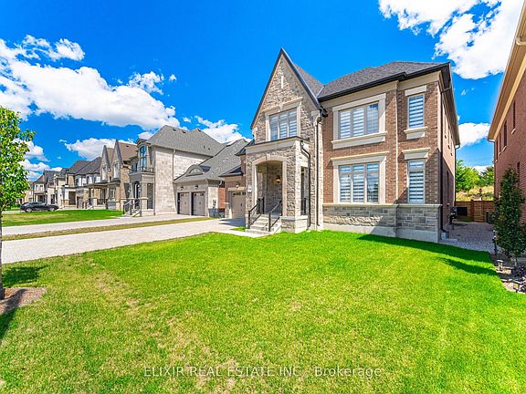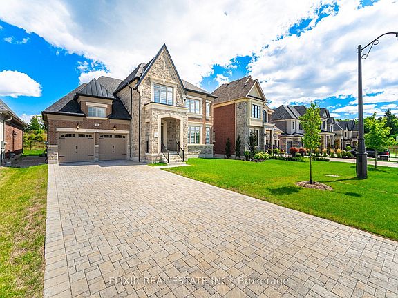 Welcome to 33 Sculpture Garden Lane. A Rare Offering in Copperwood Estates, Kleinburg. Discover refined living in this brand-new, never-lived-in home, situated across from Copper Creek Golf Club in Kleinburg's most prestigious communities. The elegant stone-and-brick exterior is complemented by an oversized interlocked driveway and a grand double-door entrance, setting the tone for the sophistication within. Inside, soaring 10-foot ceilings, sun-filled living and dining rooms, and a welcoming family room with a fireplace create an inviting atmosphere. Oversized windows bathe the home in natural light, enhancing the thoughtful layout. The Chef's kitchen features quartz countertops, S/S appliances, a massive 5' x 10' island, and a walk-in pantry with a servery. A bright breakfast area overlooks the pool-sized backyard ideal space for family gatherings & entertaining. Its east-facing backyard captures morning sunlight, providing the perfect start to each day. The main floor bedroom with an ensuite, ideal for guests or multi-generational living. A smartly designed mid-level laundry room adds convenience while preserving privacy and quiet for the upper levels. Oak Stairs with iron pickets & elegant Hardwood flooring throughout the home. Upstairs, the primary room with an 11-foot coffered ceiling, dual walk-in closets, and a spa-inspired ensuite. All five bedrooms are generously sized, with ensuite & W/I closet. Home features extra-tall doors, upgraded baseboards throughout, and pot lights throughout the main floor. The unfinished lower level offers endless potential, whether envisioned as a home theatre, gym, or recreation space & mudroom with direct garage access. Perfectly located just minutes from Highways 427 and 400, top-rated schools, and the charm of Kleinburg Village, this home places boutique shopping, fine dining, scenic trails, and cultural landmarks within walking distance.