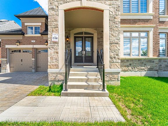 Stone-and-brick exteriorOversized interlocked drivewayGrand double-door entranceOversized windowsQuartz countertopsBright breakfast areaPool-sized backyard