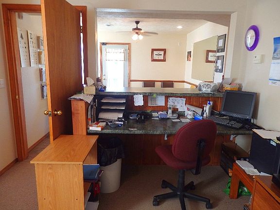 Really nice office building in Theodosia, MO on U.S. Highway 160 was being rented out as a medical office, but could be a perfect place for a variety of businesses. In addition to the main level offices, the upstairs could be living quarters, meeting room or break room. The main level of this building has approx. 1,190 sq.ft. The entry door goes directly into the nice waiting room (11'7" x 14'5") with vinyl floor and then leads to the receptionist's carpeted office (14' x 11'3") with a built-in counter and window dividing the 2 rooms. There are 4 additional carpeted rooms for offices & storage (12' x 14'; 12' x 12'; 10' x 10 1/2'; 12'5" x 8'9" and 2 half baths (5' x 5' & 5' x 4'). The half story upstairs (approx. 580 sq.ft) has an interior stairway and also an outside entry of its own. The carpeted main room is 28' x 15' and has a mini kitchen set up with counter and sink. There are 3 more carpeted rooms (11' x 11'; 11' x 10'9"; 6'8" x 6'8") and a 3/4 bath (shower) 6'8" x 6'10" with vinyl floor. The building has a nice covered front porch 39'10" x 10'. The property borders paved U.S. Highway 160 in Theodosia, MO, about a mile from Bull Shoals Lake. A very attractive building just waiting for your business plan! Call Us For More Information 417-273-2290 Toll Free 1-855-273-2290