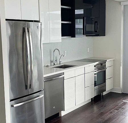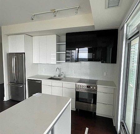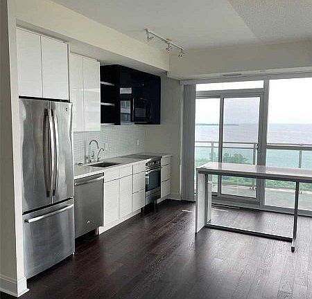 Experience luxurious waterfront living in this bright and spacious newly painted 2-bedroom, 2-bath corner suite at Jade Waterfront Condos, featuring a large wrap-around balcony with rare, unobstructed south, west, and sunset views of the lake and city from every room. The open-concept layout boasts floor-to-ceiling windows, 9 ft ceilings, and a sleek modern kitchen with stainless steel appliances, quartz countertops, a centre island, and an ensuite stacked washer and dryer. The primary suite offers a private ensuite washroom, while the second bedroom is perfect for guests, a home office, or quiet relaxation. Perfect for sunrise breakfasts and sunset drinks, this residence offers resort-style amenities including an outdoor pool, jacuzzi, rooftop terrace, party room, lounge, billiards, golf simulator, fitness centre, guest suites, and more. Ideally located in the heart of Mimico, steps to the lakefront, Goodman Trail, Humber Bay Park, dining, shopping, and with quick highway accesswhere modern comfort meets breathtaking waterfront serenity.