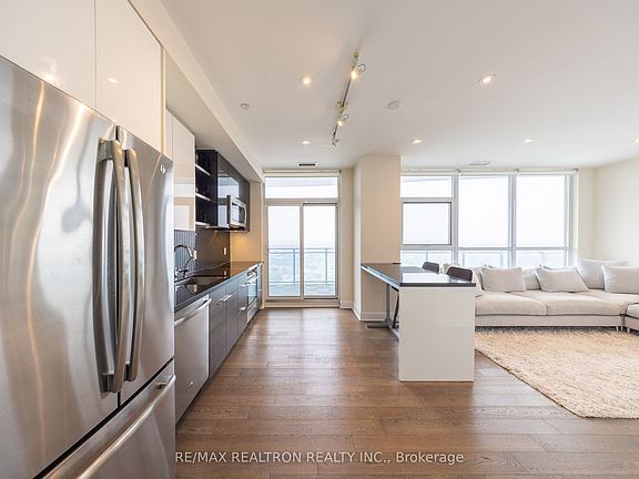 Boasting with over 1000 sqft of space, welcome to this stunning private corner unit at 33 Shore Breeze Dr! Experience luxury at its finest in this beautiful 1 bedroom, 1 bathroom condo soaring high above the city on the 34th floor of one of Etobicoke's most sought-after buildings. Inside, you'll find a thoughtfully designed open concept layout featuring 9 foot ceilings, floor-to-ceiling windows that effortlessly brighten the space and laminate flooring all throughout. You can enjoy a sleek kitchen with stainless steel appliances, quartz countertops, and ample cabinet space. The spacious bedroom offers comfort and privacy along with a large closet and built in shelving to enhance organization just for you. The well finished bathroom adds a touch of luxury to your daily routine with a deep soaker tub making it perfect to unwind after a long day. While the unit itself is a dream, Step outside to your private, large wrap around balcony and take in views that truly set this unit apart. This bright and modern suite features breathtaking views of Lake Ontario and the iconic CN Tower, creating the perfect backdrop from morning to night. Enjoy the convenience of in unit stacked laundry that's elegantly tucked away, one parking space and an extra large locker for even more added convenience. The building is one of a kind that offers a variety of amenities including guest suites, media room, gym, rooftop deck, party room, 24 hour concierge and the list goes on and on!! Located in the heart of the vibrant Humber Bay Shores community, you're just steps from waterfront trails, parks, cafés, restaurants, transit, and all the lifestyle amenities you could ask for. Perfect for professionals, couples, or anyone seeking stunning views and modern living by the lake. Be sure to book your private showing today and make this unit your very own!