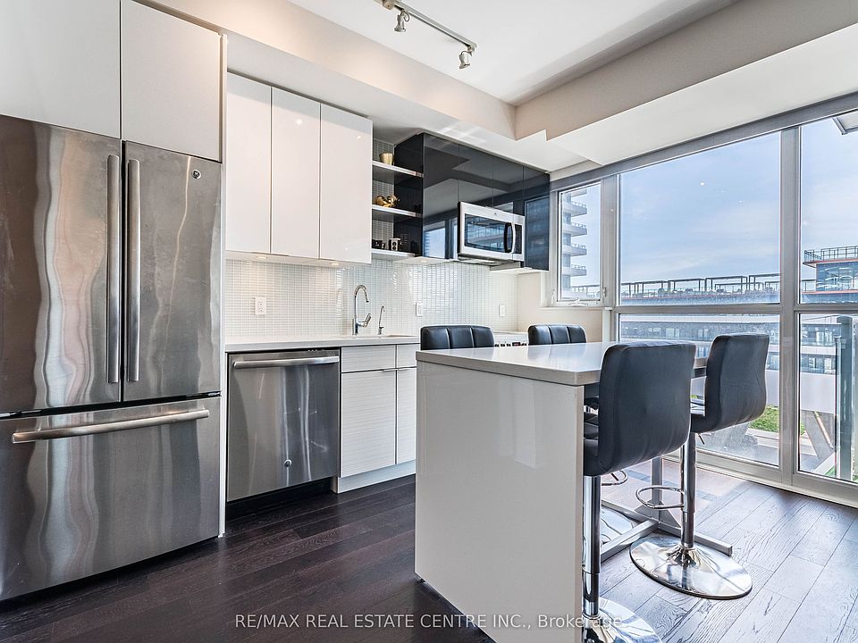 Pristine 746 sq ft 2 BR + 2WR + den. Immaculatate owner occupied, never rented -a must see. Premium location for upscale lifestyle steps from Humber Bay's vibrant waterfront and scenic trails. Enticing mix of bustling restaurants, shops, and transit steps away. Enjoy stunning lake views and amazing sunsets from your serene 112 sq ft balcony upgraded with wood deck tiles. Has 5 star amenities, ample underground visitor parking - invite friends and family for a BBQ and dip in the affinity pool surrounded by serene loungers to relax and take in the views. This unit is super clean, has in suite security system for safety, upgraded with beautiful laminate floors (no Carpet), beautiful quality finishes on cabinetry, Stainless Steel Appliances, Quartz counter tops, cabinet undermount lighting, Kitchen island, Beautiful colour scheme with porcelain tiles in bathrooms. Very spacious, flexible floorplan can accommodate many living arrangements. Parking and Locker included in maintenance fees. Pets restricted up to 49lbs, building has dog washing station to clean up before entering your unit. Building offers guest suites for your out of town guests, has a theatre room, outdoor patio/lounge, pottery studio, sports simulator, outdoor mini golf, Billiard room, darts, kitchen, Change rooms, Saunas, yoga studio, pool/jacuzzi, BBQ's, Fitness Gym, Table Tennis.