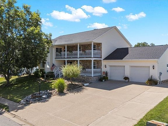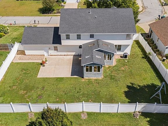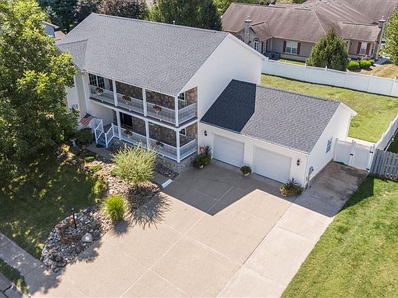 Welcome to 33 Silos! This grand 5 bedroom, 3.5 bath home is truly one of a kind, with a unique second-story front porch and over 4,500 sq.ft. of finished living space. Step inside to a spacious kitchen with a breakfast bar, newer appliances, and a walk-in pantry, seamlessly connected to the family room. Sunlight fills the adjoining sunroom, creating the perfect spot to enjoy crisp autumn mornings. The first floor laundry room adds everyday convenience, while the oversized 2-car attached garage and extra-wide driveway provide plenty of room for family and guests. Upstairs, the master suite is a retreat of its own with private balcony access, a huge walk-in closet, and a spa-like bathroom featuring a soaking tub...an ideal place to unwind after a cool fall day. The finished lower level offers even more living space with an open rec room, separate bonus room, and third full bathroom. Outdoors, a privacy-fenced backyard sets the stage for cozy fall evenings & enjoying the changing leaves. Topped off with a brand-new roof (2024), this home blends comfort, charm, and peace of mind. Don't miss your chance to make this exceptional property yours...schedule a showing today!