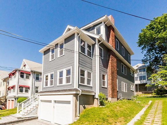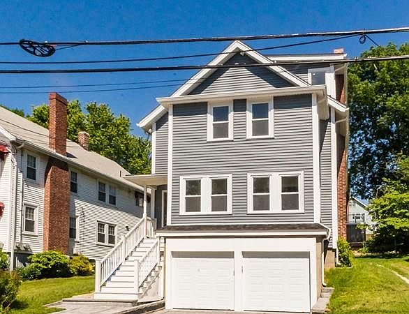 Completely renovated 12rm, 6br, 4.5bath offers island kitchens with quartz countertops/breakfast bar, tile backsplash, and stainless steel appliances (including gas stoves with grill, refrigerators with exterior ice/water & 2 freezer drawers, built-in microwaves & dishwashers), tile baths, in-unit stackable washer/dryer, hardwood floors, recessed lighting, skylights, generous storage, rear roofed porches, gas heat and hot water, partially finished divided rooms in basement with direct entry to garage, and rear yard. Exterior features cobblestone driveway and lovely stone walkway/steps/walls. Centrally located between vibrant Cushing and Waverly Squares. Walk to a variety of eateries, shops, bus and commuter rail.