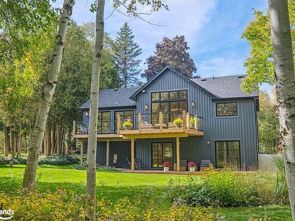 Welcome to your peaceful oasis tucked into the trees – an impeccably designed, fully renovated family home backing onto lush greenspace and the Silver Creek. No detail has been overlooked with this move-in ready home. The upper level features a stylish, modern kitchen perfect for entertaining with top-of-the line appliances, a 36†gas stove, beautiful stone counters and a built-in wine fridge that is ready for your culinary masterpiece as you host family and friends. A generous dining room offers plenty of seating room and features custom 10 ½ foot oversized sliding doors that lead to a brand-new deck with glass railing that wraps around the back of the home. The great room features soaring ceilings, Scandinavian-inspired pale oak flooring, and ample room for all of your friends and family to gather in front of a wood-burning fire, with a bonus front deck to enjoy the breathtaking evening sunsets and views of the mountain. The primary suite has been designed as a haven for you to escape and unwind. A gorgeous ensuite features heated floors, double sinks, glass shower and soaker tub with a skylight. Enjoy a quiet moment on the deck through the double sliding glass doors. In this private retreat, you will love waking up to stunning views of the forest and falling asleep to the sounds of the magical silver creek in your backyard. The lower level provides privacy for your family or guests with three additional generous-sized bedrooms and two full baths - both with heated flooring. Two bedrooms provide walk-out access to a private lower deck through sliding glass doors, while the third room provides a cozy gas fireplace. Completing this space is a large laundry room, storage and your very own sauna to melt away the stress of the day. This spectacular home is just minutes from all of the shopping, dining and recreation that Collingwood is famous for. A fantastic trail system is steps from the front door. Its time for your family to make some remarkable new memories!